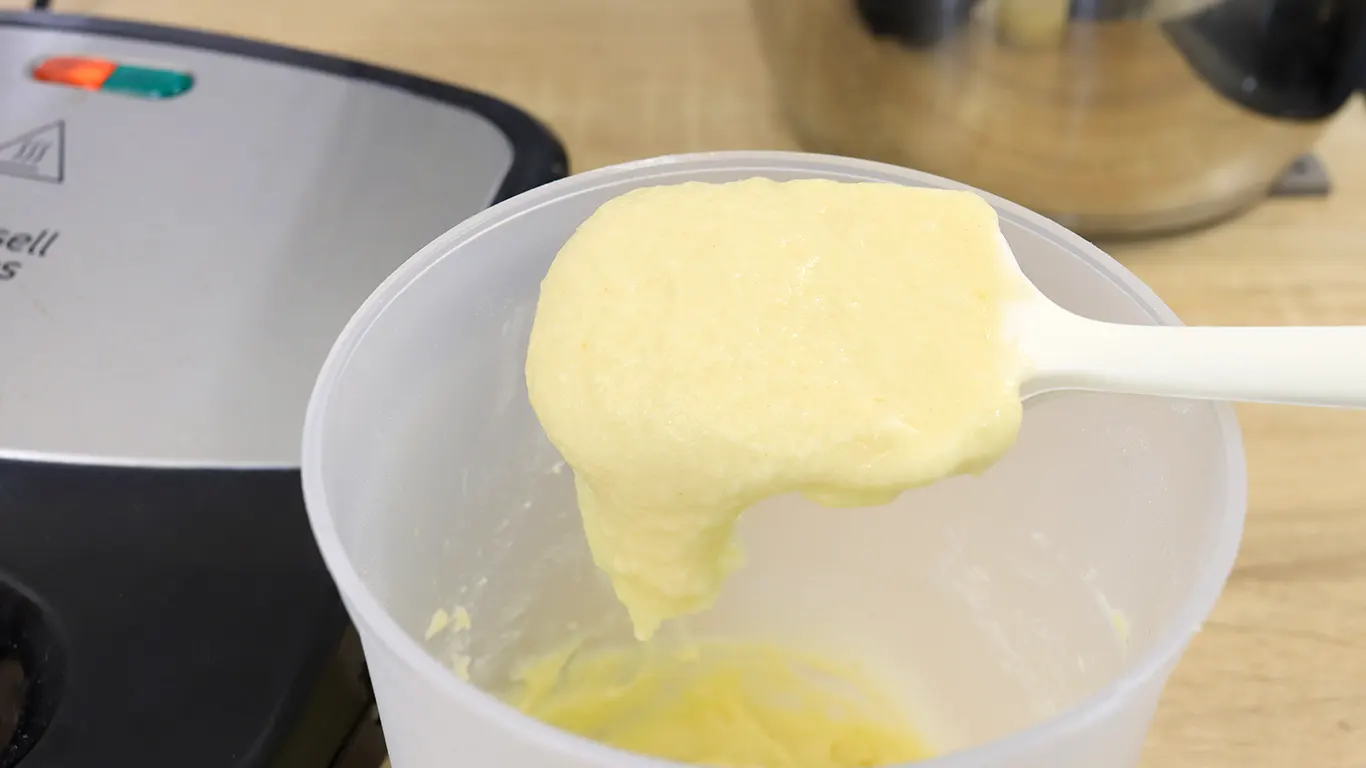 - Викладіть по 1-2 ложки тіста на розігріту поверхню вафельниці.